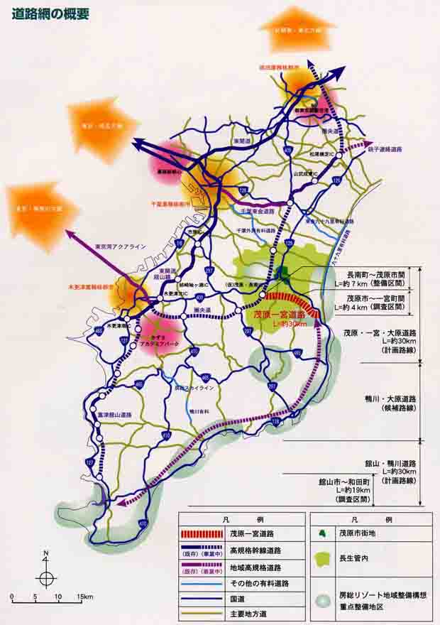 本路線は、外房地域の中心都市である茂原市及び県南の地域と圏央道を連絡する地域高規格道路であり、圏央道へのアクセスの確保の向上を図り、首都圏への広域的な交通ネットワークを形成することにより、県都千葉市と外房地域の「県都1時間構想」を実現する上で不可欠な道路として平成12年から整備を進めています。