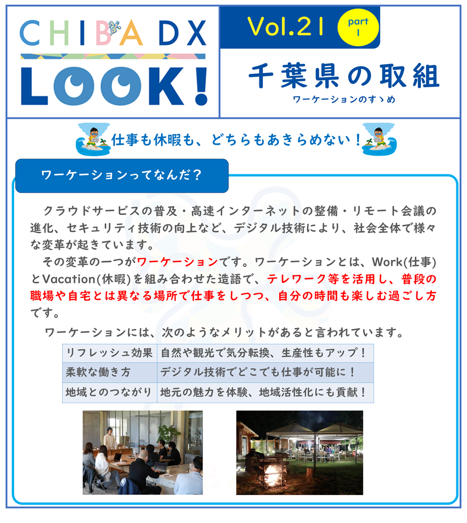 千葉県では、ワーケーションについてのポータルサイトを作成し、モデルコースやプログラム等を発信しています。