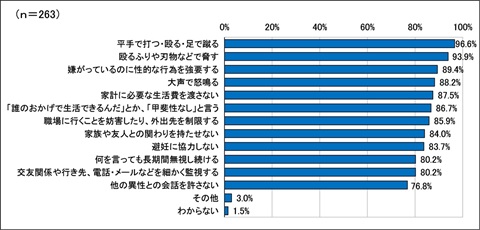 また、『その他』の答えの中には、「給料を搾取する」、「必要な受診をさせない」、「人として尊重しない」などの意見がありました。