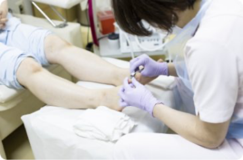 糖尿病を抱える方が、今後も元気に歩き続けられる足をコンセプトに、肥厚爪や胼胝ケア等予防的フットケアの他に筋肉量の測定、足の機能評価も行っています。糖尿病を抱える方の様々な悩みや思いをお聴きする事で、生活に寄り添った方法を一緒に考えていく外来です。