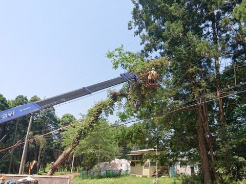 このため、県では、被害を受けた森林を復旧するとともに、倒木による道路や電線等の施設への被害を予防するため、災害に強い森づくりを進めています。