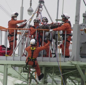 石油コンビナート等特別防災区域内の特定事業所は、日ごろから一般的な初期消火、負傷者救出、近隣事業所・地元消防署との連絡等といった防災訓練を行っています。