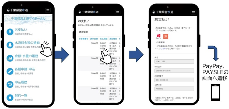 紙の検針票や納入通知書に替わり、スマホ等へのオンラインでの通知となります。