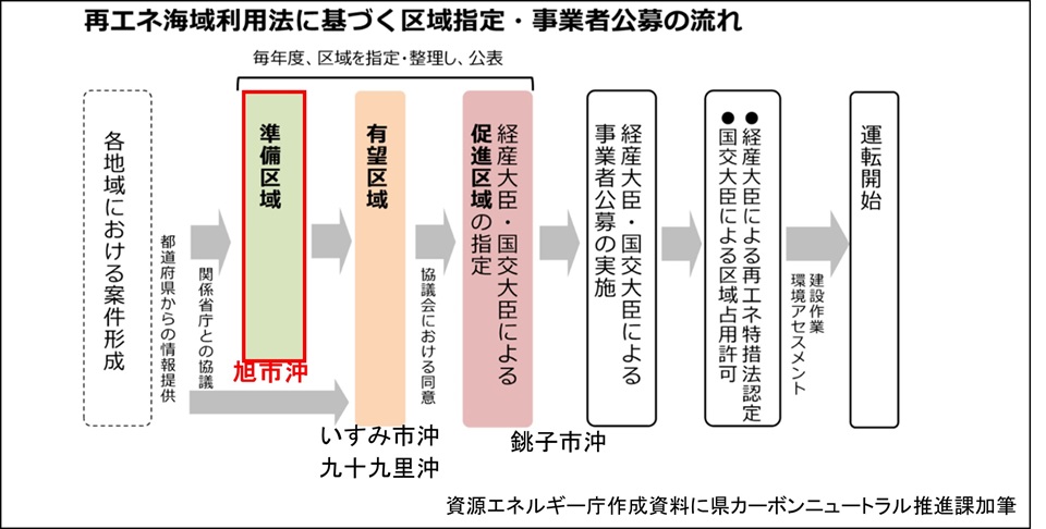 ホーム > しごと・産業・観光 > 商工業 > 新エネルギー産業の振興 > 海洋再生可能エネルギーについて > 旭市沖洋上風力発電事業について > 旭市沖における洋上風力発電に関する「準備区域」の整理等について