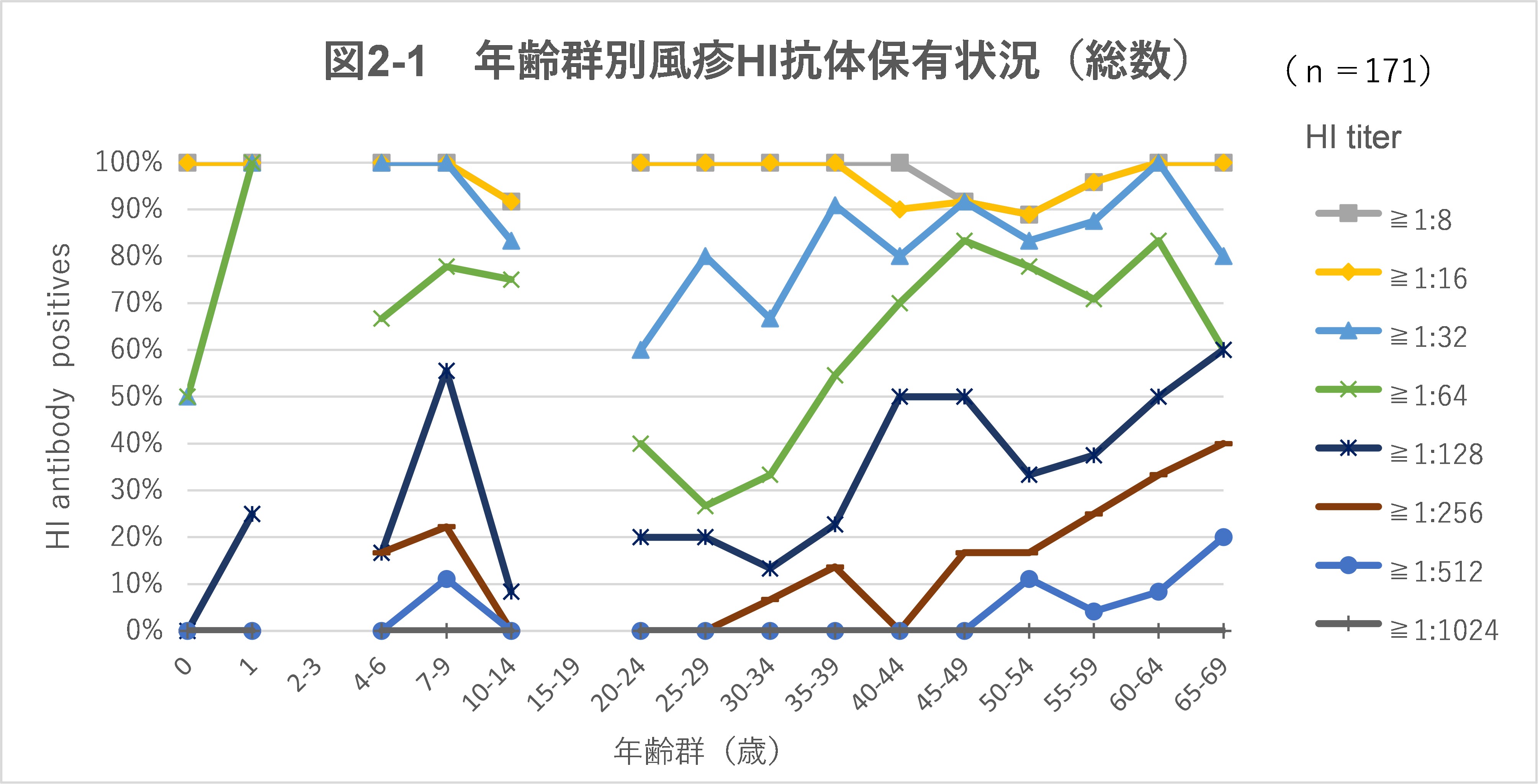 図2-1 年齢群別風疹HI抗体保有状況(総数)