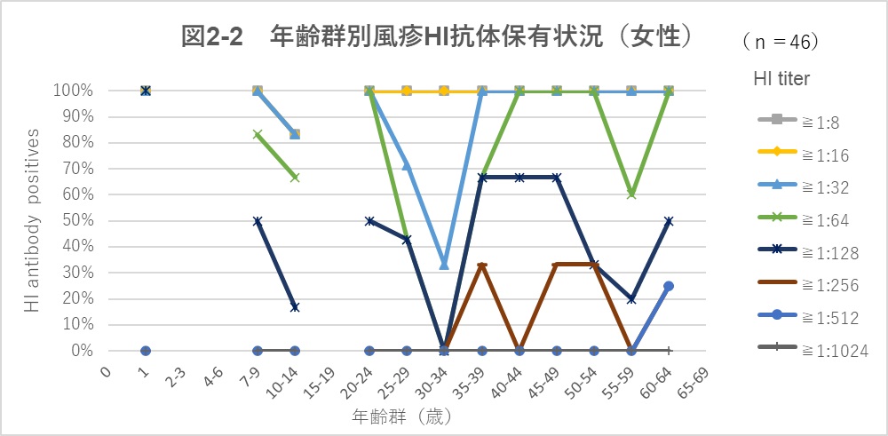 図2-2 年齢群別風疹HI抗体保有状況(女性)