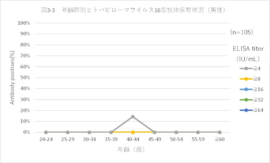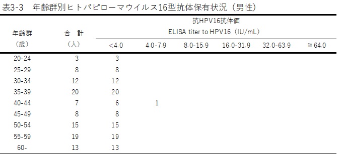 表3-3 年齢群別ヒトパピローマウイルス16型抗体保有状況(男性)