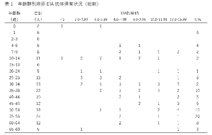 表1 年齢群別麻疹EIA抗体保有状況(総数)
