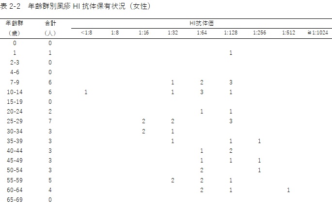 表2-2 年齢群別風疹HI抗体保有状況(女性)