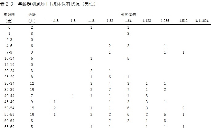 表2-3 年齢群別風疹HI抗体保有状況(男性)