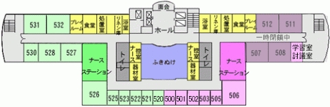 - 本館3階に、中央手術室、小児集中治療室(PICU)、新生児集中治療室・未熟児室(NICU・GCU)。