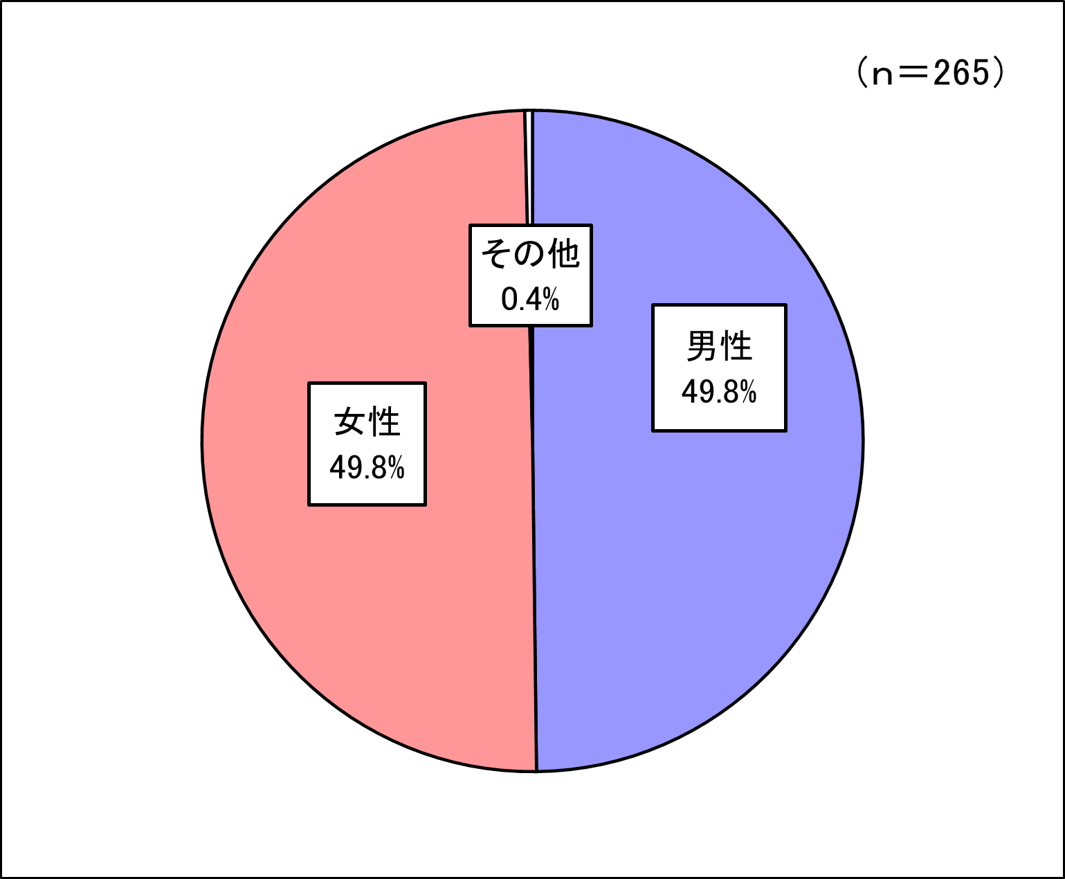 性別については、『男性』が49.8%、『女性』が49.8%となりました。