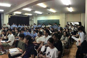一般教養と医療系で55もの講座が、各分野での専門的な研究者や職業人等を講師に、土曜、日曜、夏休みなどに開講されています。写真は弁護士を講師に招いた模擬裁判です。