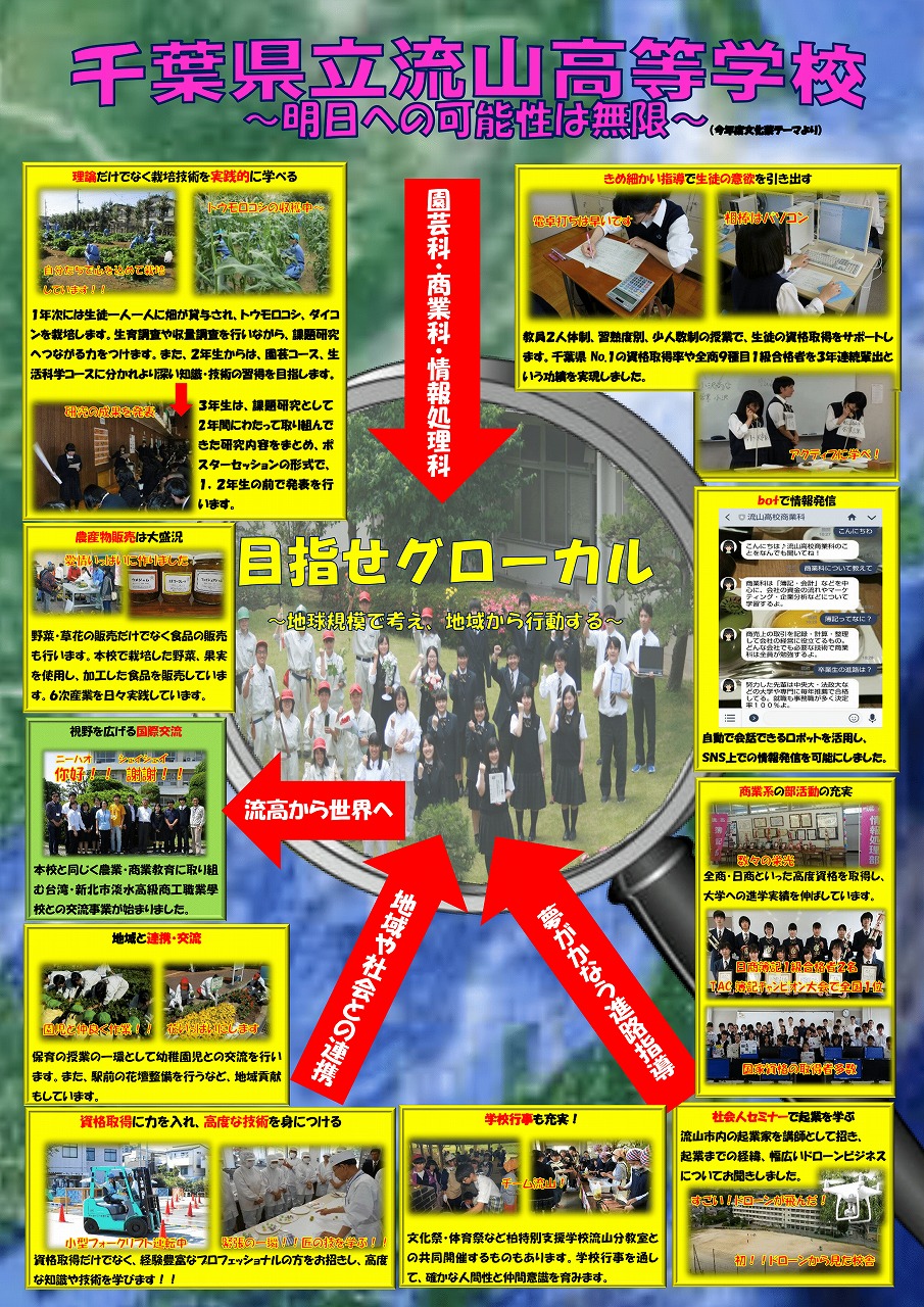 千葉県環境教育モデル校である同校は、環境問題の解決に向けた力の育成を目的として、園芸科・自動車科・情報処理科の3学科が連携し、下総ecoイルミネーションプロジェクトを立ち上げました。その他にも、専門の学びを活かした多くの実績をあげています。