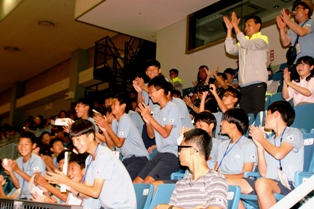 日韓合同見学(柏市立柏高等学校吹奏楽部の演奏)(20日、千葉ポートアリーナ)