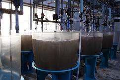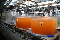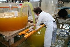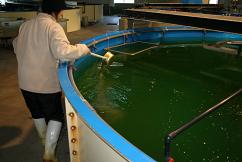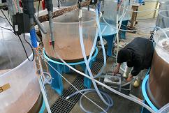 収穫されたアルテミアは1トン水槽に入れられます。