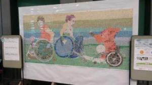 大学生が以前作成したウィルチェアーラグビーの切手アート
