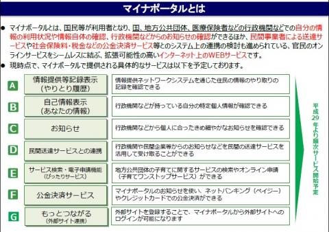 社会保障・税に関する行政の手続で添付書類が削減されることやマイナポータルを通じて一人一人にあったお知らせを受け取ることができることや、各種行政手続がオンラインでできるようになります。