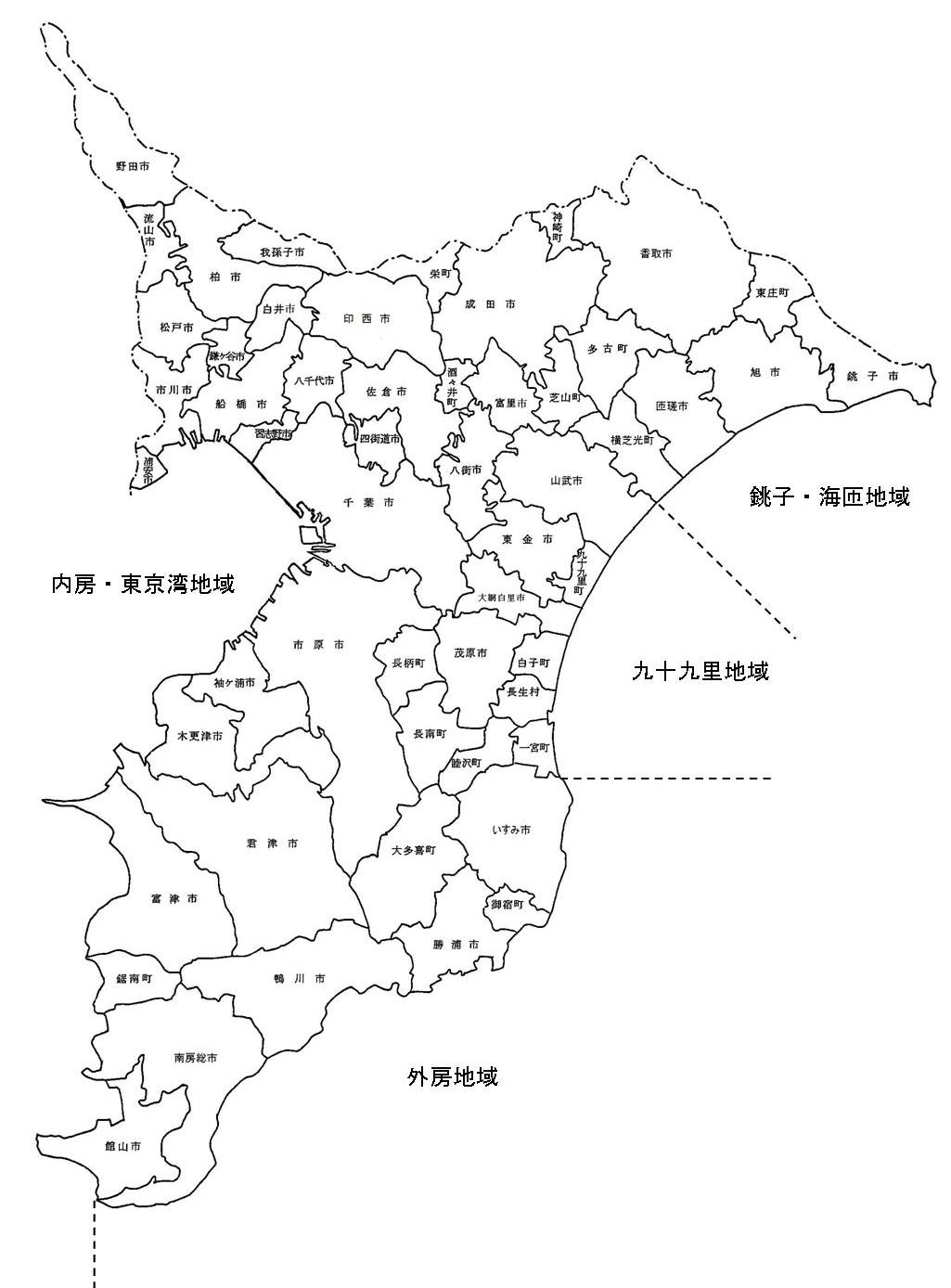 銚子・海匝地域、九十九里地域、外房地域、内房・東京湾地域から原則として各1地点を選定し、1回あたり計4地点程度調査