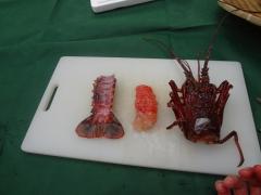 02.腹側を上にして、頭胸部の中心にハサミ等を刺し、活けしめします。