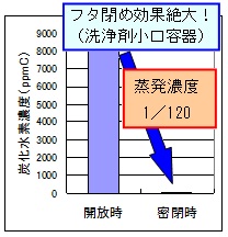 容器のフタを閉めるだけで、VOCの蒸発濃度は格段に変わります(左図)。容器や洗浄槽等のフタ閉めをこまめに行いましょう。