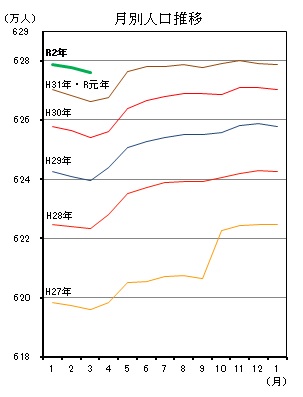 日本人:6,135,805人(前月比2,233人減)外国人:140,200人(前月比693人増)
